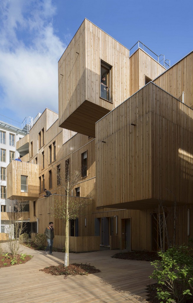 Seit 2007 ist der Holzbau in Frankreich in Bewegung gekommen und gerade in den letzten Jahren vervielfachen sich die Initiativen. Doch 2009, als das Büro KOZ den Wettbewerb gewann, waren innerstädtische Holzbauen noch selten. So lagen die Herausforderungen des Projektes weniger im konstruktiven Bereich, als in dem kulturellen Zusammentreffen der durch die Vorfabrikation vorausplanenden Holzbaufirmen und der anderen Gewerke, welche teilweise eher im Laufe der Baustelle das Projekt entdecken und Lösungen finden.