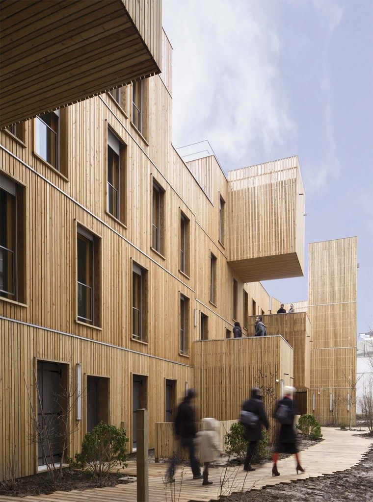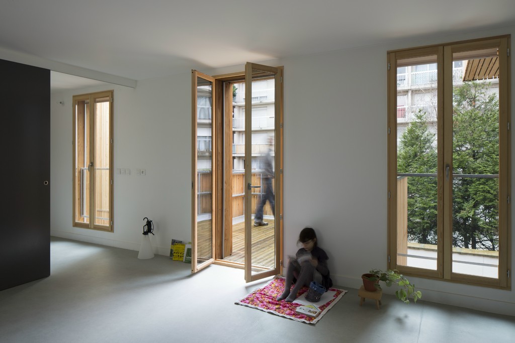 Die Architekten von KOZ hatten in den ersten Jahren ihrer Büroeröffnung ihr Interesse für den Holzbau bei einem kleineren Projekt entdeckt. In den folgenden Jahren wurden mehrere Wettbewerbsbeiträge in Holzbau eingereicht, jedoch ohne Erfolg. Mit der Grenelle Environnement im Jahre 2007, einer Serie von nationalen Diskussion über Nachhaltigkeit, änderte sich die Stimmung in Frankreich. Der Blick der Akteure der Baubranche begann sich für den Holzbau als Alternative zum marktbeherrschenden Betonbau zu öffnen. Als KOZ dann im Wettbewerb für das Projekt in der Rue Philippe de Girard einen Holzbauentwurf einreichte, war der Bauherr dafür bereit. Zumal die Architekten kurz vorher ein kleineres Wohngebäude mit Betonstruktur und Holzfassaden erfolgreich für die Siemp fertiggestellt hatten.