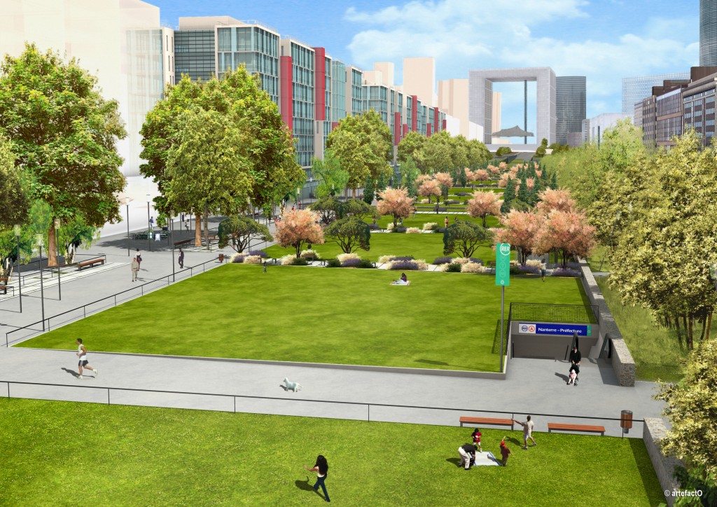 Seither entwickelt die Gemeinde von Nanterre durch die Gründung der EPASA das Gelände in der Verlängerung der Historischen Archse von La Défense nach Westen zu der Seine. Nanterre wollte sich von dem Entwicklung von La Défense distanzieren und verfolgt eine ausgeglichene Planung mit Wohnungen und Büros und einer besonderen Aufmerksamkeit auf die Gestaltung der Öffentlichen Räume als sozialer Treffpunkt. Zur Finanzierung der Opération bekam die Société Générale die Baugenehigung für einen Büroturm mit 70 000 m² Bürofläche und die Versicherung AXA verliess ihre Büroräume in einem der veralteten Hochäuser aus den 70er Jahre in La Défense, um sich in Nanterre 50 000 m² Bürofläche neuzubauen.
