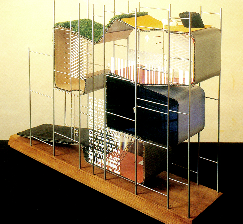 The award-winning project, “Field Operations Office” for the rehabilitation of New York’s Fresh Kills Landfill, was based on the formulation of a busy matrix of lines (“threads”), surfaces (“mats”) and “clusters,” organizing an alternative landscape on the site.