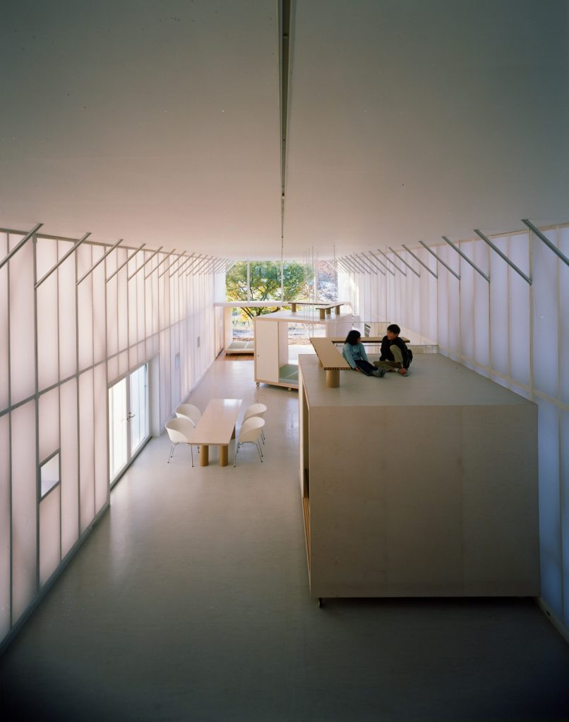 The Japanese firm Tezuka Architects already has to its credit a dozen or so completed private houses, which appear to be unusual variations on the same theme. Each one develops a special connection between the domestic and the natural: living with light, the wind, the sea, the landscape. On display at Archilab was the firm’s Roof House, in which an extensive, gently sloping roof duplicates the house’s interior layout and functions.